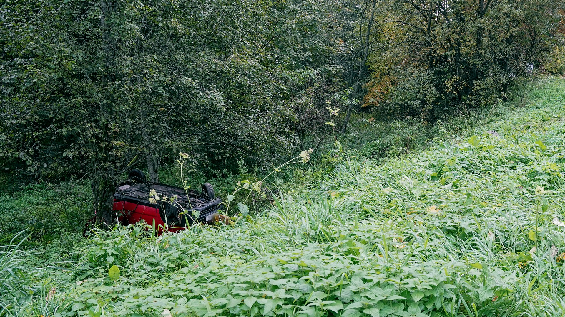 Z ustaleń wynika, że samochód osobowy zderzył się z autobusem, a następnie wypadł z drogi i dachował. Siła uderzenia była na tyle duża, że pojazd zatrzymał się poza jezdnią.
