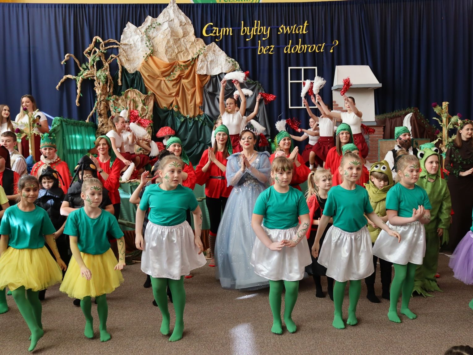 Po oficjalnym powitaniu gości przez Dyrektor Szkoły, Wiolettę Czemarnik, publiczność została zaproszona do „Baśniowej Krainy Dobroci”. Uczniowie klas II-VII, wspierani przez nauczycieli i rodziców, wystawili spektakl pt. „Czym byłby świat bez dobroci?”, oparty na motywach baśni Marii Konopnickiej „O krasnoludkach i o sierotce Marysi”.
