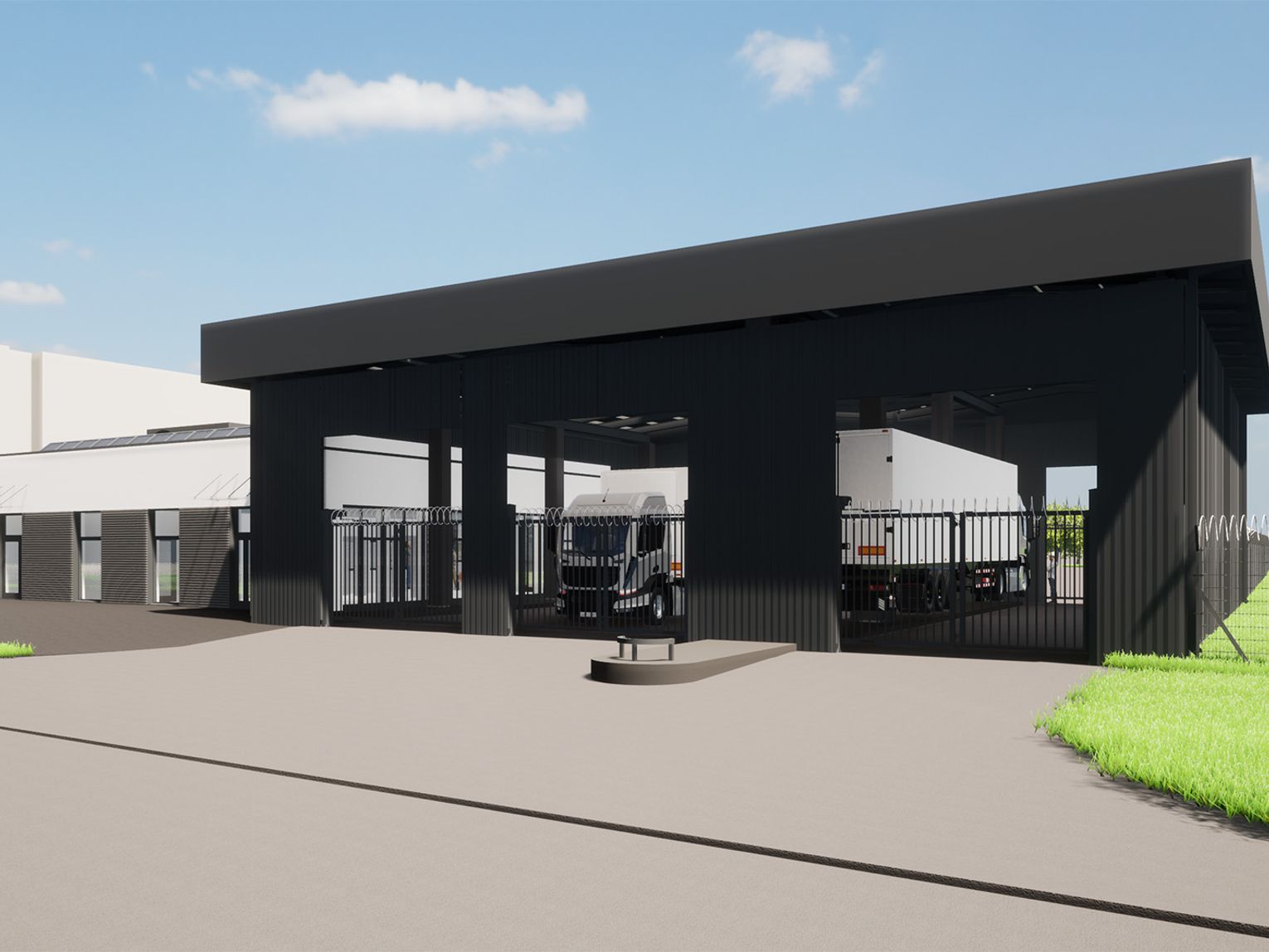 Projekt obejmuje budowę nowoczesnego kompleksu infrastruktury bezpieczeństwa, dedykowanego obsłudze ruchu do strefy zastrzeżonej portu w tym: