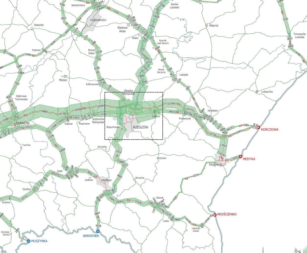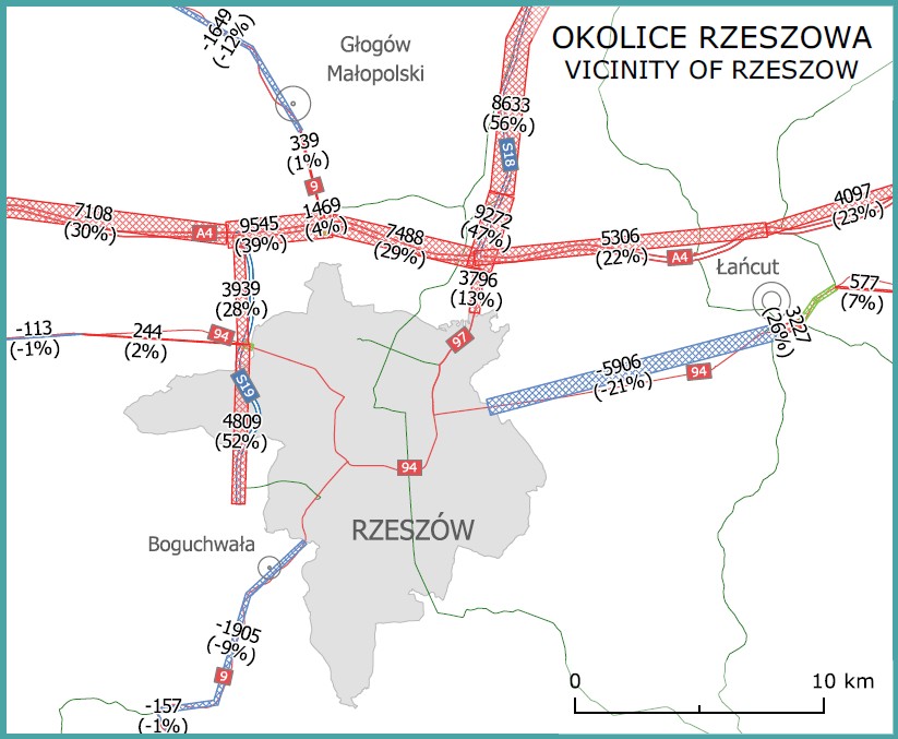 Na Podkarpaciu szczególnie widoczne jest to na przykładzie drogi krajowej nr 94 między Rzeszowem a Łańcutem, gdzie natężenie ruchu spadło o 21 proc. Jednocześnie na równoległej autostradzie A4 ruch wzrósł o ponad 20 proc.