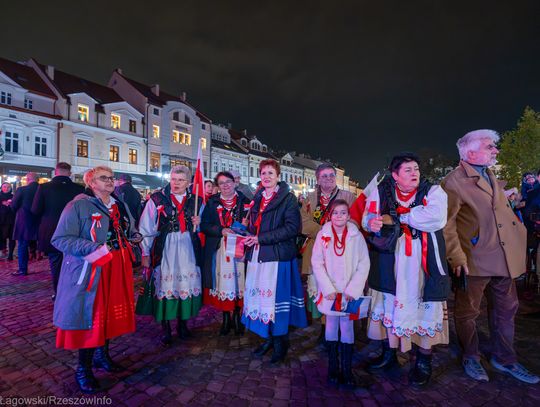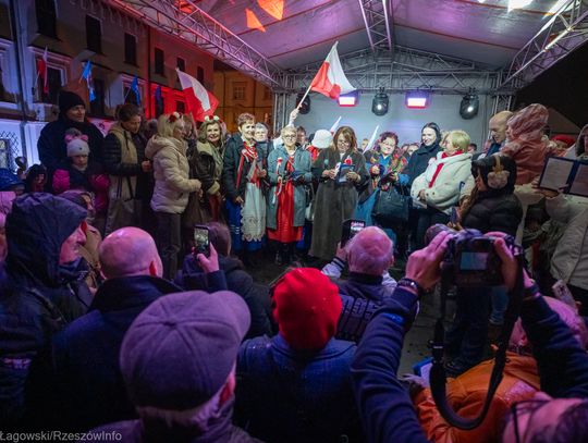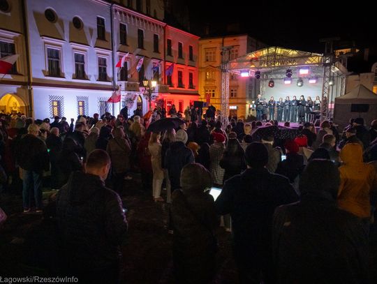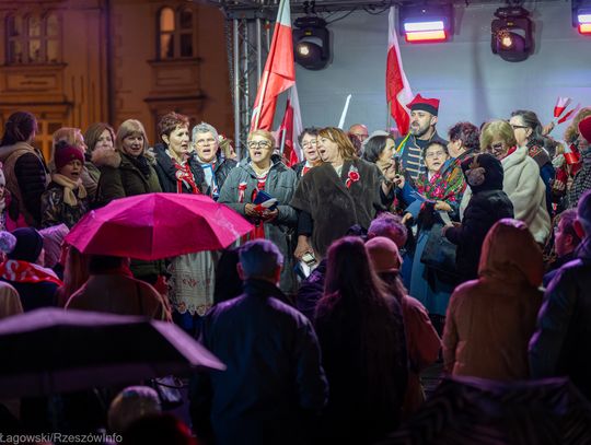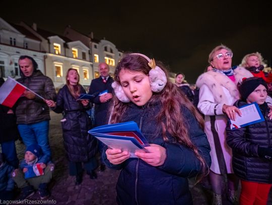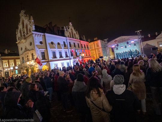 Rzeszowski Rynek stał się sercem wzruszającego wydarzenia, podczas którego mieszkańcy miasta wspólnie odśpiewali najpiękniejsze polskie pieśni patriotyczne. Plac wypełnił się narodowymi barwami, a głośny, zjednoczony śpiew przypomniał o wartości, jaką jest wolność i niepodległość.