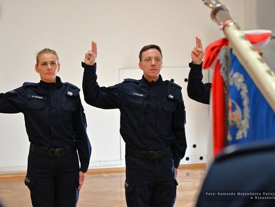 „Ja, obywatel Rzeczypospolitej Polskiej, świadom podejmowanych obowiązków policjanta – ŚLUBUJĘ!” – te słowa, pełne powagi i odpowiedzialności, wypowiedzieli dzisiaj nowi policjanci, którzy wstąpili w szeregi podkarpackiej Policji. Ślubowanie złożyło ośmiu funkcjonariuszy, w tym sześciu policjantów i dwie policjantki.
