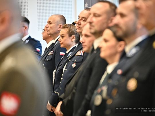 W auli Oddziału Prewencji Policji w Rzeszowie odbyła się uroczysta ceremonia, podczas której wręczono odznaczenia państwowe i resortowe, a także przyjęto ślubowanie 29 nowych funkcjonariuszy. W wydarzeniu wzięli udział policjanci i pracownicy Policji garnizonu podkarpackiego, policyjni emeryci oraz liczni przedstawiciele władz państwowych i służb mundurowych.
